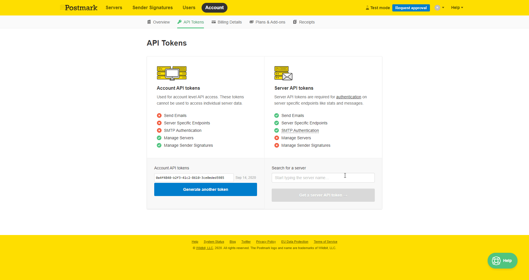 - From the displayed dropdown list, select your server and click on the Get a server API token button.