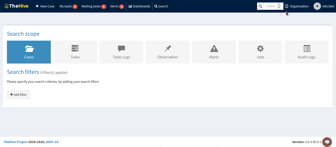 - Access your TheHive dashboard.